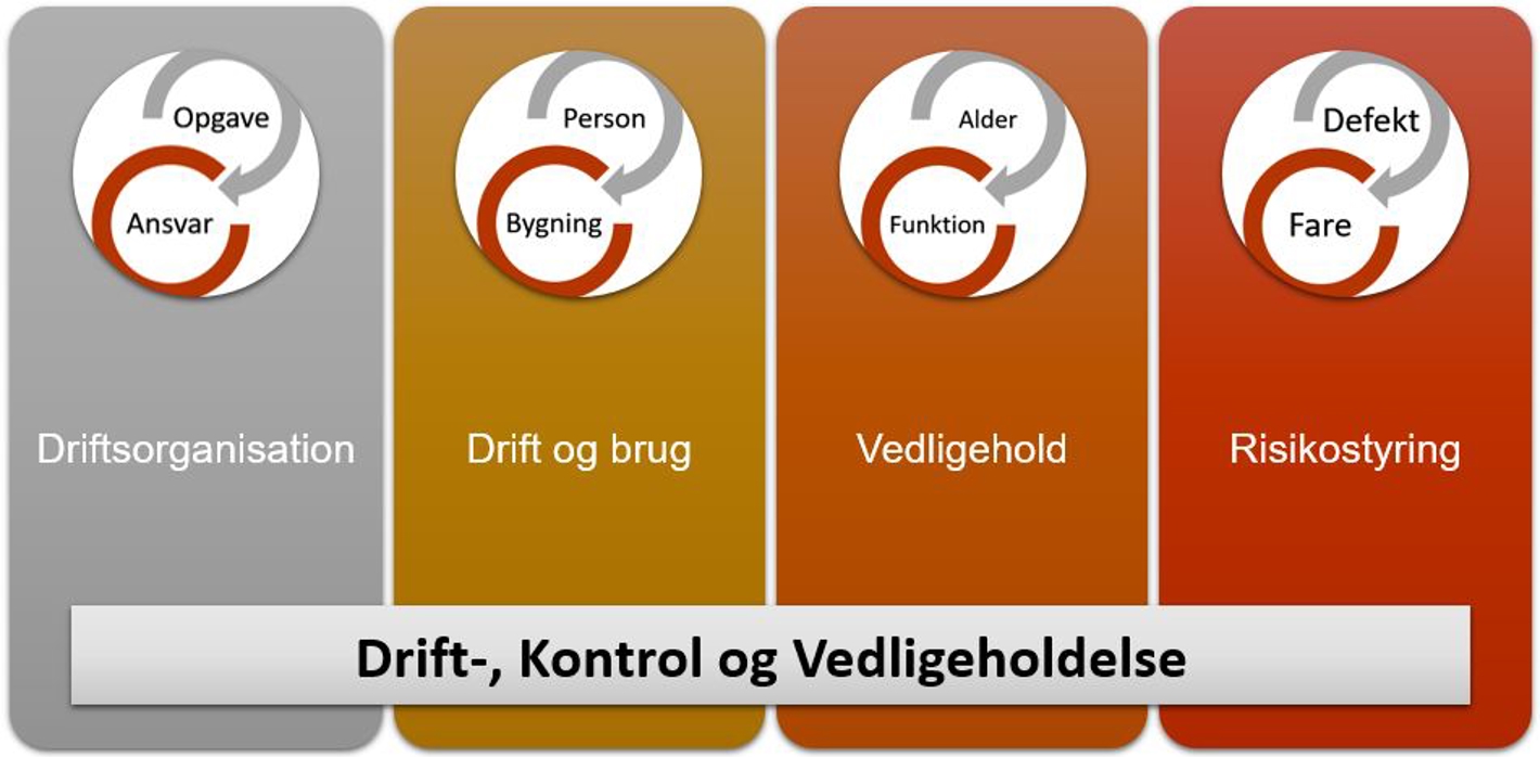 Når en bygning er nybygget, fungerer alt som det skal, men over årene medfører daglig drift og brug, at der opstår slid. Baggrunden for drift, kontrol og vedligeholdelse af bygninger er, at den brandsikkerhed bygningen er ”født med”, skal opretholdes i hele bygningens levetid.